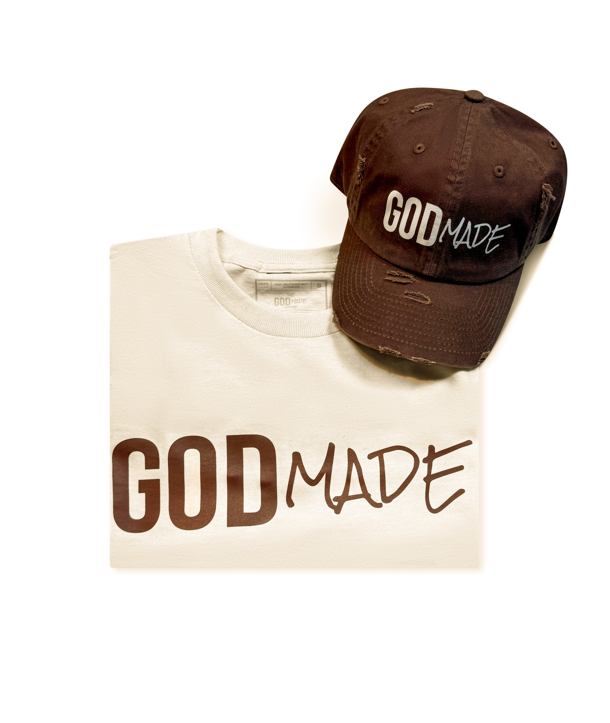 (Off White & Brown) GodMade Unisex Hat & Shirt Combo