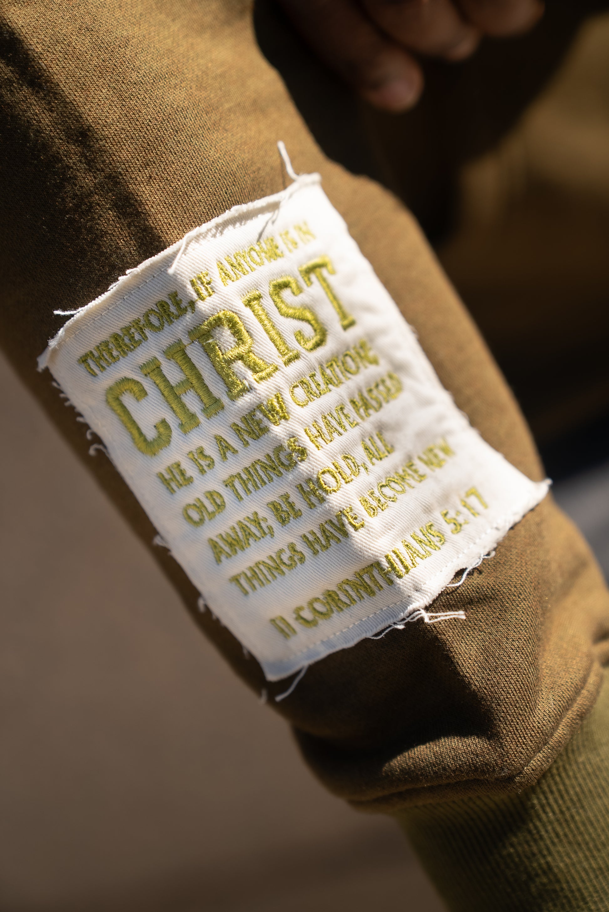 Designed for those who carry their faith with confidence, this piece combines premium streetwear edge with an eternal message: “Therefore, if anyone is in Christ, he is a new creation.”