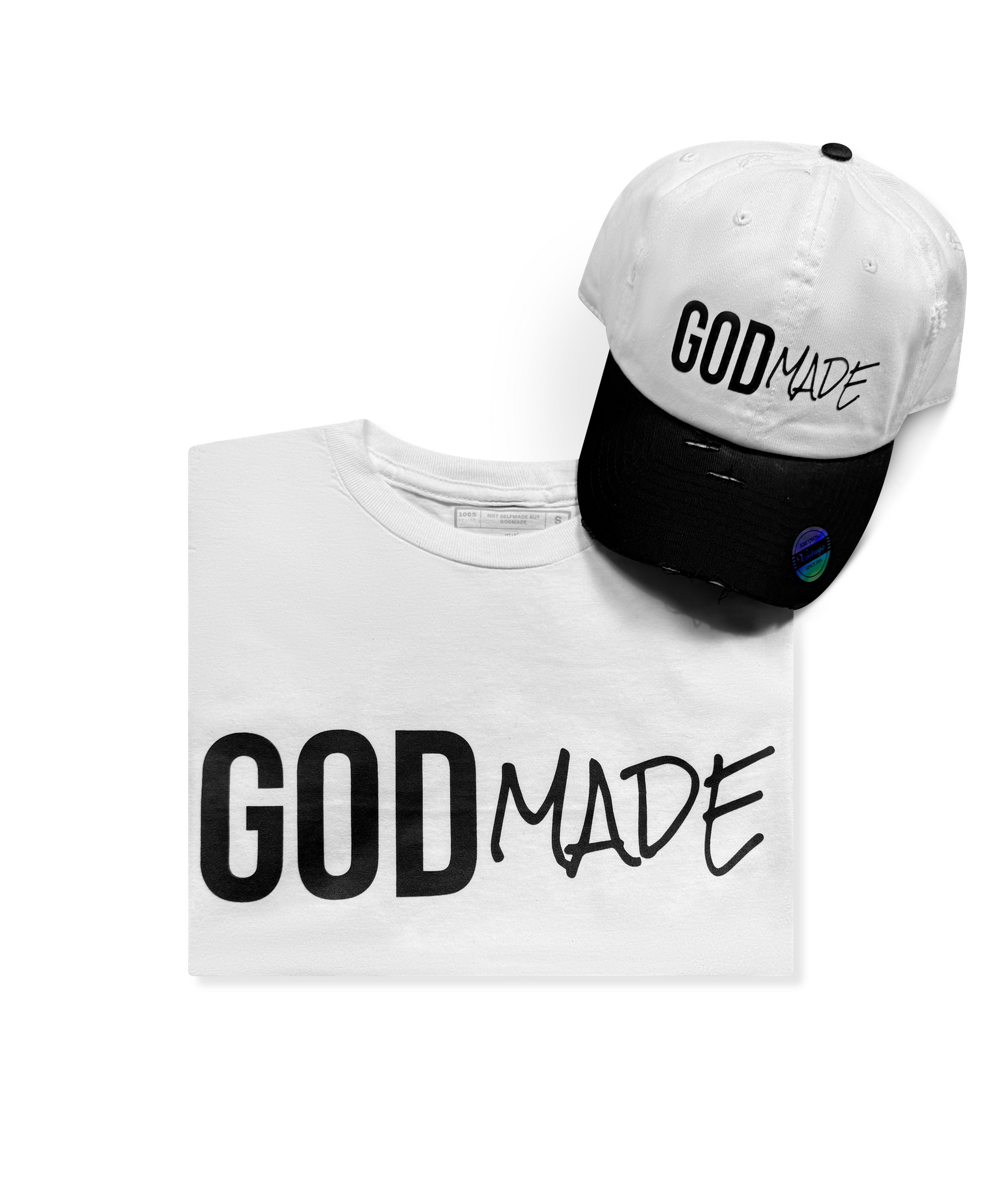 (Pure White & Mercy Black) GodMade Unisex Hat & Shirt Combo